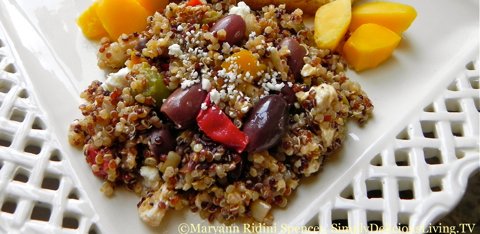 To make balsamic vinegar dressing, use ⅓ c. good balsamic vinegar, ¾ c. olive oil and garlic salt and pepper to taste. Mix well. Keep in a separate container and use on quinoa to taste.